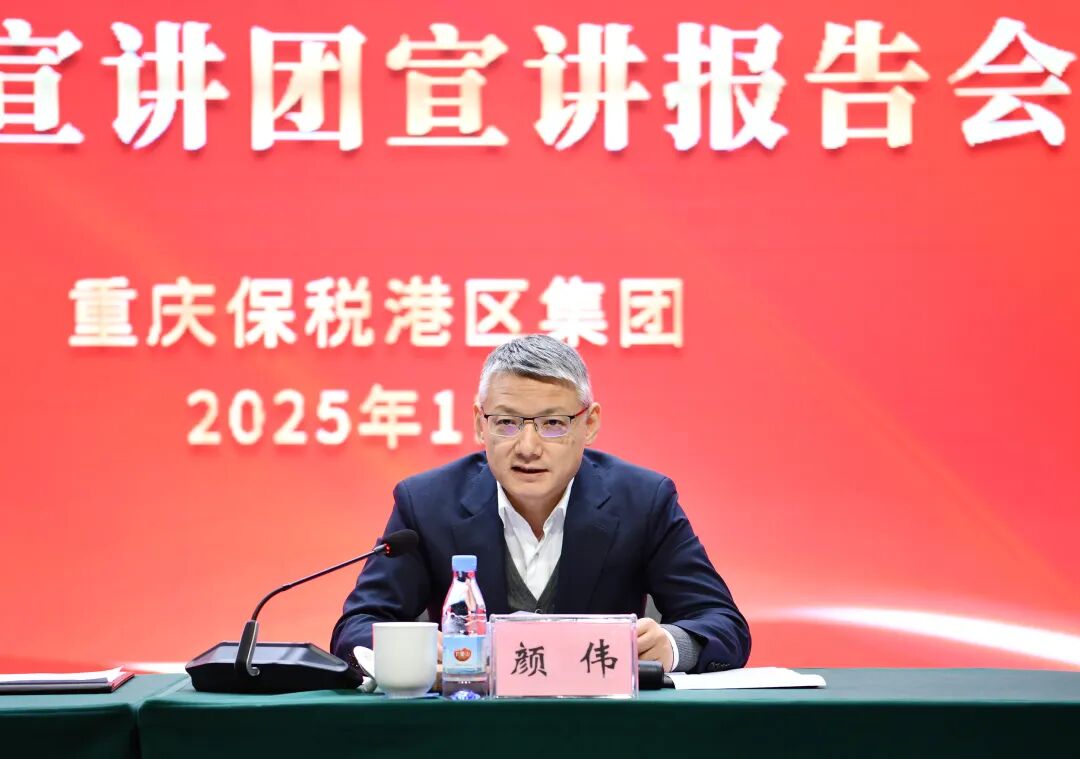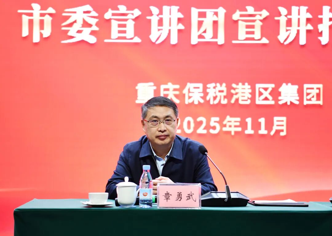 根据市委统一安排,11月20日,学习贯彻党的二十届四中全会精神市委宣讲团宣讲报告会在重庆保税港区集团举行。市委宣讲团成员,市商务委党组书记、主任章勇武作宣讲报告。集团党委书记、董事长颜伟主持会议。