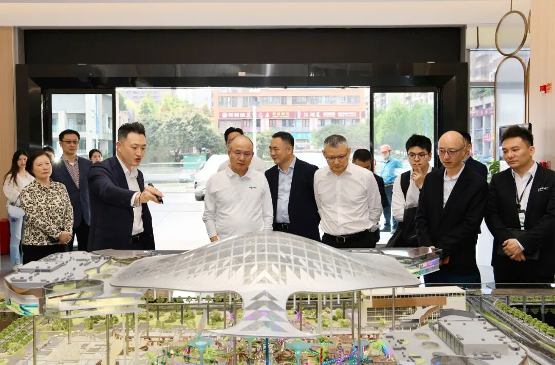 调研中,郭广昌一行首先来到“Hi·重庆”招商中心。在项目沙盘前,调研组详细听取了项目整体规划与功能布局介绍。这座总建筑面积近50万平方米的大型商业综合体,东西跨度逾470米,地下两层、地上四层,开阔的建筑格局内将系统布局主题乐园、沉浸式体验和旅游购物等多元业态。作为复星旅文HiSphere超级文旅Mall品牌的首发项目,“Hi·重庆”致力于打造面向市民与游客的城市中心文化旅游目的地。